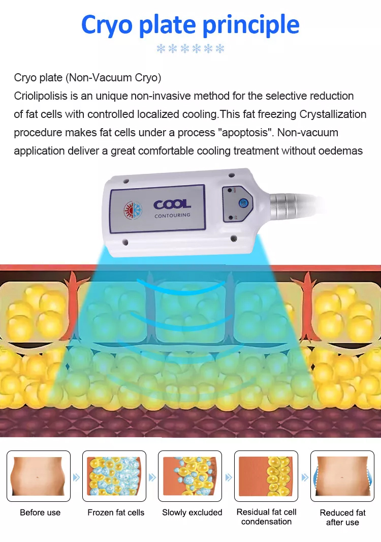 cooling plates are placed on the chosen body areas and the parameters selected, the device starts and safely runs passive Cryo