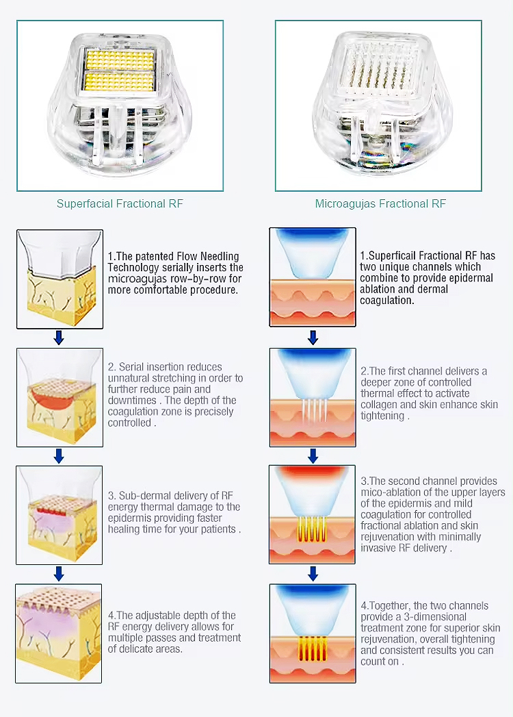 Microneedles fractional RF & superficial fractional RF system through specially designed fractional points and